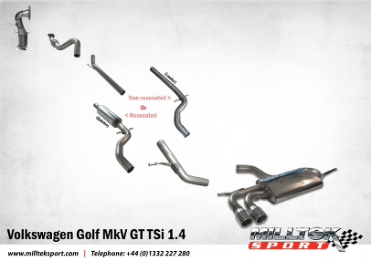 MILLTEK PERFORMANCE Edelstahlabgasanlage ab Turbo inkl. SPORT Katalysator & MOTORSPORT Hosenrohr - mit Endrohr Optik li 2 x 76.2 mm Jert - Vorschalldämpfer nicht schallgedämpft inklusive für - VW, Golf V (1K), 1.4 TSI (Baujahr 2006-2009)