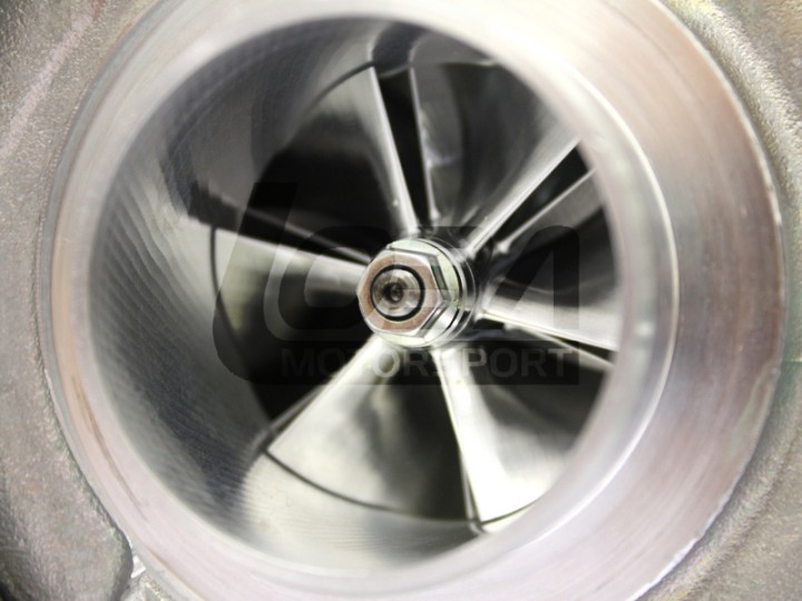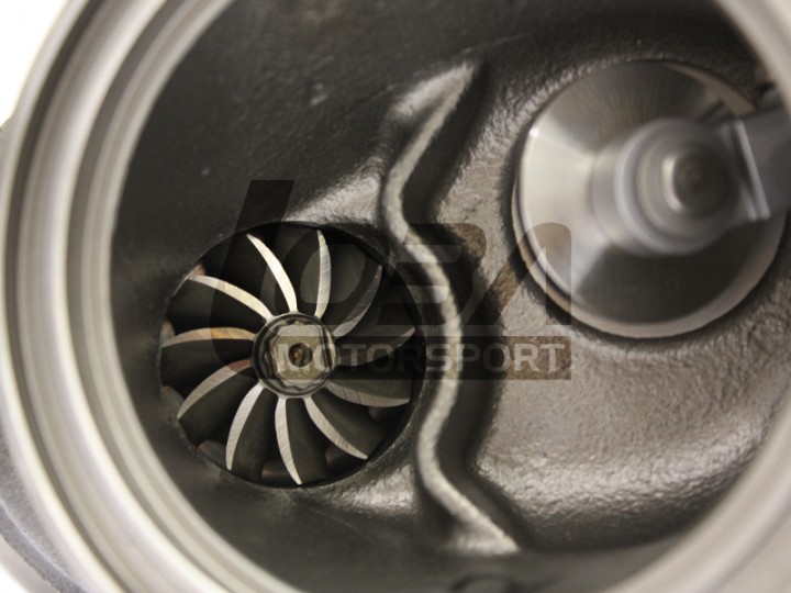 We take a factory brand new IHI turbocharger's and optimize with 5-AXIS CNC machining processes to reduce back pressure, to maximize throughput to the turbine. Machine the compressor covers and we utilize the latest new improved LOBA Motorsport forged billet compressor unique in design, geometry and size, but is extremely light in weight, yet still very strong. LOBA Motorsport forged billet compressor wheels are 25% lighter than some original used cast items and lighter than standard billet types, but still has greater strength and durability over a cast compressor or standard billet types. Being a forged billet the nose and stem of the compressor wheel can be CNC machined significantly smaller to allow for a greater blade area and diameter for inducer size, blades can also be made thinner, so more efficient and flowing more air then say same size billet compressor wheel. The end result is a compressor of extreme lightness, fast unmatched response and superior efficiency. We clip the turbine wheel to reduce back pressure, then fit a reinforced axial bearing for the very best compromise between power output, longevity and turbo response.. Clip the turbine to reduce back pressure and also lighten, after all that, the whole unit including the single parts are balanced to far higher standards then OE, for the very best compromise between power output, longevity and turbo response.